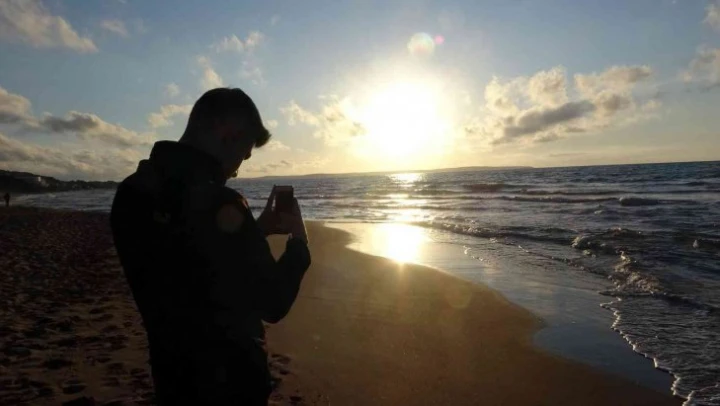 Türkiye'nin en kuzey ucu Sinop'ta vatandaşlar, denizin üzerinden batan güneşin eşsiz manzarasını izlemek için Kumkapı Plajı'nı ziyaret ediyor.