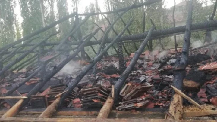 Çorum'un Sungurlu ilçesinde bir evin ahır kısmında çıkan yangında, ahır tamamen kül oldu.