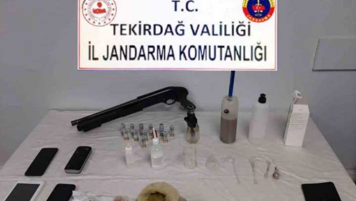Süleymanpaşa ilçesi Yavuz Mahallesinde ikamet eden A.G. (29) evinde uyuşturucu madde imal ettiği ve evine gelen şahıslara satışını yaptığının duyumu alınması üzerine Jandarma KOM ve İstihbarat Şube Müdürlükleri ve Kumbağ Jandarma Karakol Komutanlığı ekiplerince eve operasyon düzenlendi. Operasyonda, 285 gram toz esrar, 15 gram eroin, 5 gram metamfetamin, uyuşturucu madde imalatında kullanılan şişelenmiş halde sıvı asit ve aseton, uyuşturucu madde tartımında ve içiminde kullanılan cam huni ve malzemeler, 1 adet ruhsatsız pompalı tüfek ve 12 adet fişek ele geçirildi.