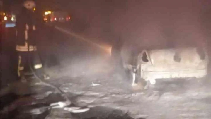 Mersin'in Tarsus ilçesinde TEM Otoyolu tünel girişinde otomobil yandı.