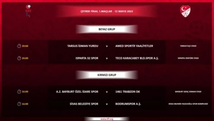 TFF 3. Lig Play-Off eşleşmeleri ve yarı final müsabakaları programı şöyle: