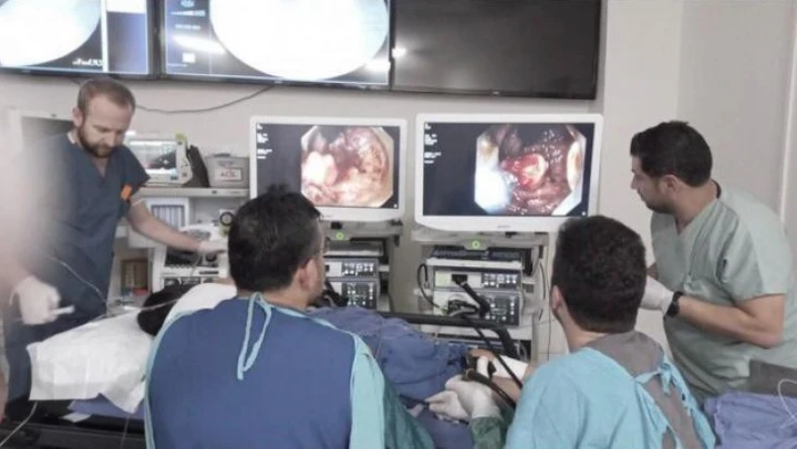 İşlemin olası riskleri ve getirileri hakkında hasta ve hasta yakınlarını bilgilendirerek, onların onayını alan Öğretim Üyeleri, hastaya aynı anda iki kolonoskopi cihazı yerleştirerek, hastanın kalın bağırsağındaki tümörü güvenli bir şekilde çıkardı. İşlem sonrası takiplerinde sağlık durumu iyi olan hasta, bir gün sonra hastaneden taburcu edildi.