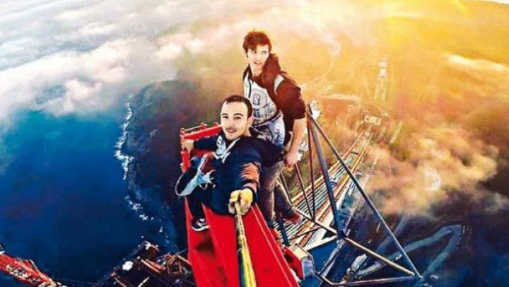 Parkur sporuyla ilgilenen Pavel Smirnov ve Özcan İpar, vince çıplak elle tırmanırken o anları kayda aldı.