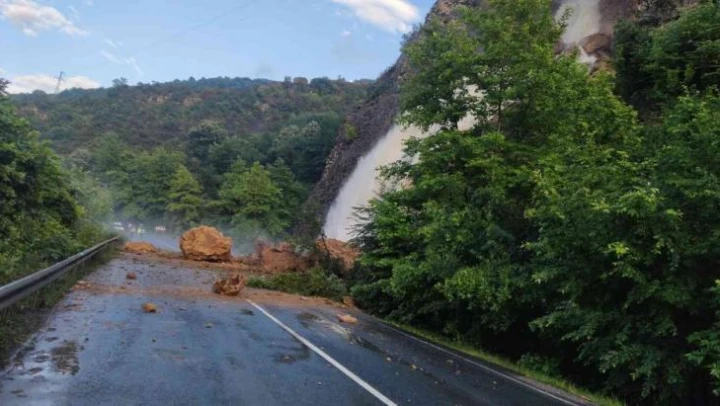 Karabük'ün Yenice ilçesinde meydana gelen heyelan ve dağlardan yola dökülen sular ve kopan kayalar yolu kapattı. Trafiğe kapanan yolun açılması için ekipler seferber oldu.