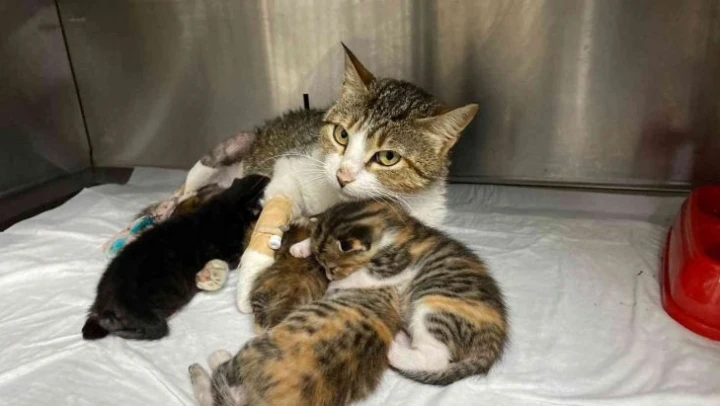 Yeni doğum yapan kedinin ayağına tuğla düştü, yavrularıyla birlikte ameliyata alındı