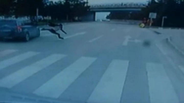 Karabük'te cipin yaya geçidinden yolun karşısına geçmeye çalışan yabancı uyruklu gence çarpma anı araç kamerasına yansıdı.