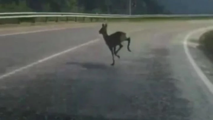 Karabük'te yolunu kaybeden bir karaca karayoluna indi. Araçların geçişinden panikleyen karacanın yolda koşması, cep telefonu kamerasıyla kaydedildi.