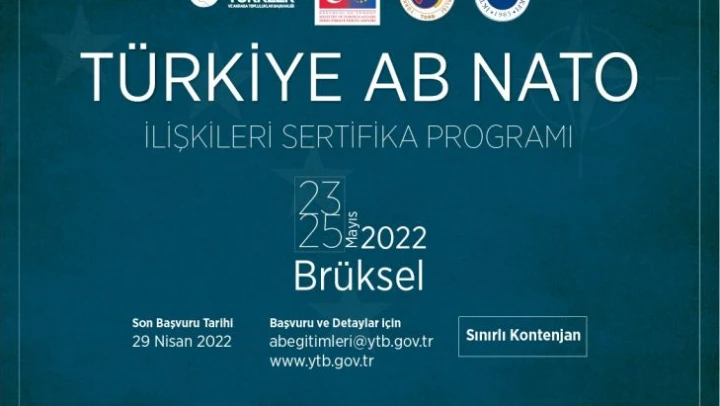 Kültür ve Turizm Bakanlığı ve YTB tarafından Avrupa Birliği ile NATO'yu yakından tanımak isteyen yurt dışındaki gençlere yönelik 'AB-NATO İlişkileri Sertifikalı Eğitim Programı' düzenleniyor. Program sayesinde genç vatandaşlar, hem Türkiye'nin AB ve NATO ile ilişkilerini daha iyi anlama fırsatı elde edecek hem de bu kuruluşlardaki kariyer imknları hakkında fikir sahibi olacak. Sertifika programı; YTB, TOBB Brüksel Daimi Temsilciliği ve İktisadi Kalkınma Vakfı Brüksel Temsilciliği işbirliğinde 23-25 Mayıs 2022 tarihleri arasında Belçika'nın başkenti Brüksel'de gerçekleştirilecek.