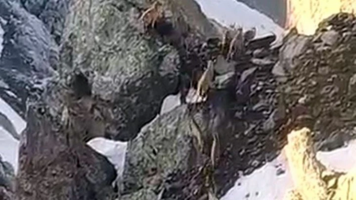 Hakkari'nin Yüksekova ilçesinde sürü halinde dağ keçileri görüntülendi.