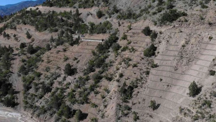 Artvin'in Yusufeli ilçesinde baraj suları altında kalacak olan ilçenin taşınacağı yeni yerleşim yerinde Orman Bölge Müdürlüğü ekipleri 8 hektarlık alanda erozyon çalışması yaptı.