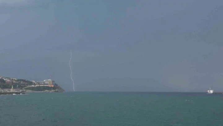 Zonguldak'ta gökyüzü şimşeklerin dansına sahne oldu. Ardından etkili olan yağış bir süre sonra etkisini kaybetti. Av yasağının kalktığı ilk gün balıkçılar ise limandan açılamadı.