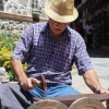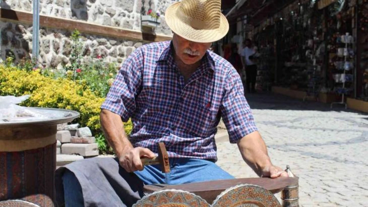 Kale ziyaretçileri, Taş Bebek Kafe’nin hemen üst sokağında bakırcılık yapan Faruk İşliyar’ı ziyaret etmeden gitmiyorlar. Takribi 52-53 senedir bakırcılık yapan İşliyar, “1970 senesinden beri bakırcılık ile uğraşıyorum. Çocukluk zamanında geldim, bakır işlemeye başladım. Çıraklıktan beri bu işle uğraşıyorum. 52-53 seneden beri bu işle uğraşıyorum. Bu bakırlar Çorum’dan Kayseri’den Beypazarı’ndan geliyor. Bu bakırı işleyerek bu hale getiriyoruz. Bu hammaddesi, güğüm, helke hepsini yapıyoruz. Bunları işleyerek desenlerini kendimiz veriyoruz. Yalnız bunları aydınger kağıdı üzerine altına kopya kağıdı koyarak çiziyoruz” dedi.