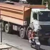 Antalya'da motosiklet ile ilerleyen aileye kamyonun çarptığı anlar güvenlik kameralarına yansıdı. Yaralı babanın, acı içerisinde kızına sarılarak feryadı yürek dağladı.