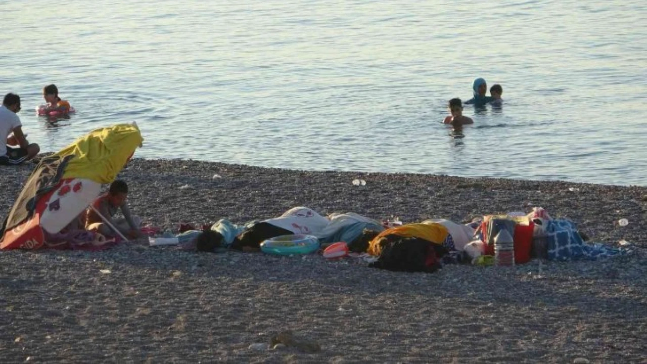 Yüksek nem ve aşırı sıcaktan bunalan vatandaşlar, dünyaca ünlü Konyaaltı Sahili’nde sabahlıyor. Bazı vatandaşlar sahile çadır kurarken bazıları da deniz havlusu ya da battaniye üzerinde uyuyor. Termometrelerin zaman zaman 40 dereceyi gösterdiği Antalya’da sahiller yüksek nem ve sıcaktan bunalan vatandaşların uğrak noktası haline geldi. Havaların ısınması ile evlerde uyuyamayan vatandaşlar, geceden denize girip ardından sahilde uyumayı tercih ediyorlar. Kimi vatandaşlar çadır kurarken kimileri ise serdikleri battaniye ve havluların üzerinde uyudu. Sabahın erken saatlerinde gün doğumu ile birlikte uyanan vatandaşlar ise gözlerini açar açmaz denize girdi.