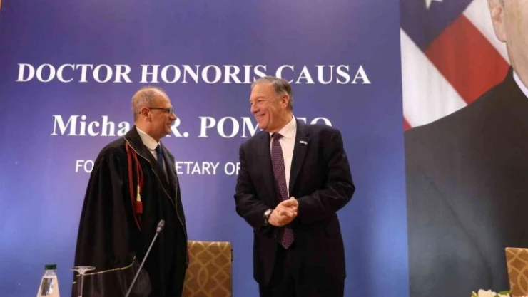 Eski ABD Dışişleri Bakanı Pompeo, Arnavutluk’ta bulunan Tiran Üniversitesi fahri doktora unvanına layık görüldü.