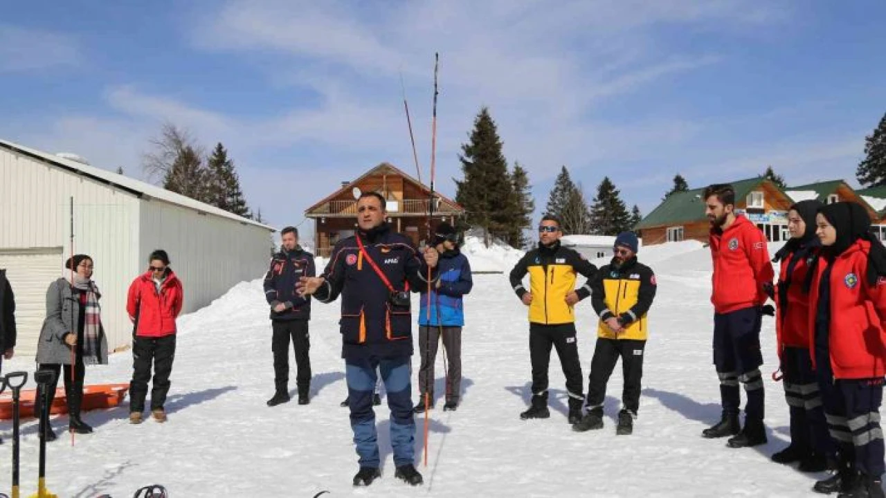 AFAD uzman ekipleri tarafından ekipmanların kullanılmasını öğrenen öğrenciler ardından çığ altında bulunan cansız mankenleri önce buldular daha sonra kurtardılar.