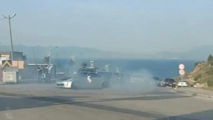 Olay, Mudanya ilçesi Yıldıztepe Mahallesi’nde meydana geldi. Edinilen bilgiye göre, düğün konvoyunda bulunan spor otomobil, trafiğin ortasında diğer araçlara aldırış etmeden drift yaptı. Onlarca aracın beklemesine aldırış etmeden asfaltta dumanlar çıkararak dönmeye tehlikeli hareketler yapmaya başladı. Pişkin sürücü trafiği tehlikeye atarken diğer sürücüler panik dolu anlar yaşadı.