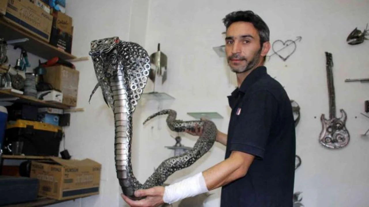 Sivas’ta yaşayan demir doğrama ustası İbrahim Doğan, internette gördüğü ‘Scrap Metal Art’ isimli hurda metal sanatına merak saldı. Küçük yaşlardan beridir tamir ve demir işçiliğinde yetenekli olan Doğan, zamanla bu yeteneği üretime dönüştürdü. Doğan, sık sık hurdalığa giderek gerekli metalleri toplayıp yaptıklarıyla müşterilerinin hayal dünyasını süslüyor. Yaptıkları arasında 3 bin adet puldan oluşan kobra figürü dikkat çekiyor.