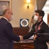 Macaristan’da düzenlenen Avrupa Güreş Şampiyonası’nda grekoromen stil 60 kiloda mücadele ederek altın madalya kazanan milli güreşçi Kerem Kamal, Manisa Valisi Yaşar Karadeniz’i ziyaret etti.
