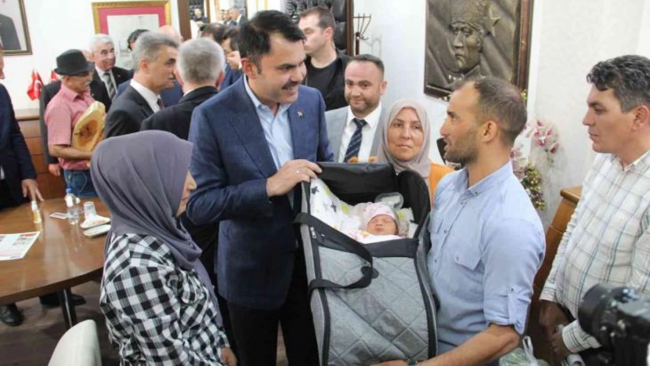 Bakan Kurum, Çandır’daki yangın anında hamile olan ve kısa süre önce bebekleri dünyaya gelen bir çiftin bebeğine altın taktı.