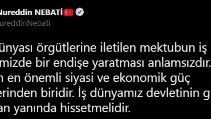 - Bakan Nebati: 'Türk iş dünyası örgütlerine iletilen mektubun endişe oluşturması anlamsızdır'