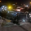 Bariyerlere çarpan otomobil karşı yola savrulup, ters döndü