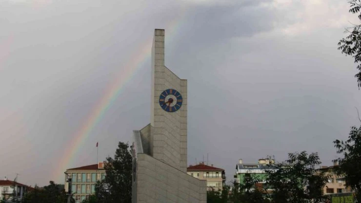 Başkentte etkili olan yağış sonrası gökyüzünde gökkuşağı oluştu. Ankaralılar o anı telefonlarına kaydetti.