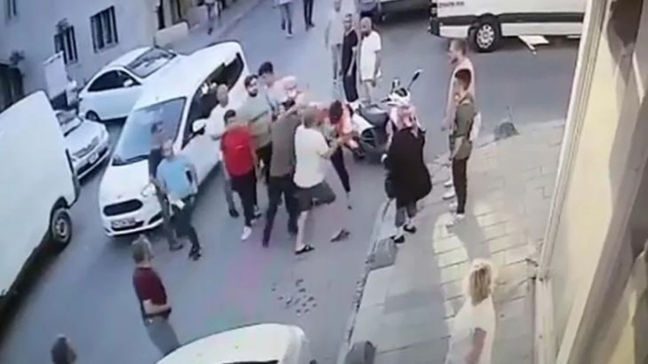 Yaşanan kaza ve sonrasında çıkan kavga bir işyerinin güvenlik kameralarına saniye saniye yansıdı. Görüntülerde ara sokaktan çıkan motosiklet ile seyir halindeki otomobilin çarpıştığı görülüyor. Kazanın ardından sürücüler tekme ve yumruklarla birbirlerine saldırıyor.
