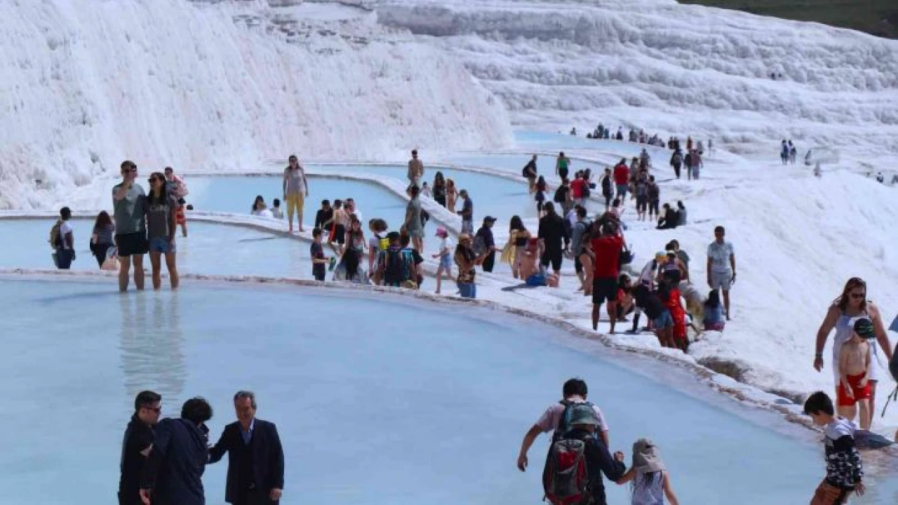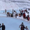 UNESCO Dünya Kültür Mirası Listesi'nde yer alan, termal suları ve tarihi zenginliğiyle dikkat çeken beyaz cennet Pamukkale, Balkan ülkeleri ve Rusya'daki soğuk havadan kaçanların akınına uğradı. Antik Kloepatra Havuzunun 36 derece sıcaklıktaki termal suyu, yerli ve yabancı turistlerle dolup taştı.