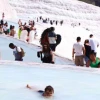 UNESCO Dünya Miras Listesi’nde yer alan beyaz cennet Pamukkale, Ramazan Bayramı tatilinde yerli ve yabancı turistin akınına uğradı.