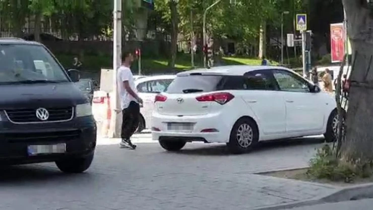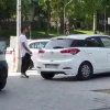 Öte yandan, polis ile değnekçinin diyaloğu ve şahsın araçları park ettirmesi saniye saniye cep telefonu kamerasına yansıdı.