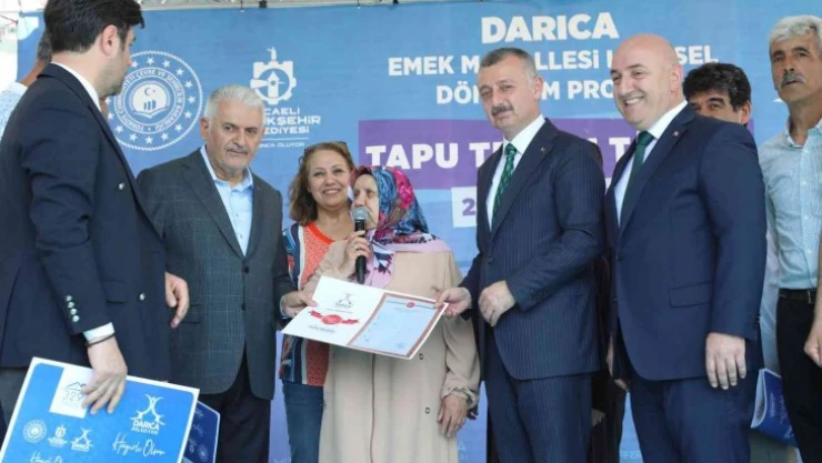 AK Parti Genel Başkanvekili Binali Yıldırım, Darıca Belediyesi tarafından düzenlenen Emek Mahallesi Kentsel Dönüşüm Projesi çerçevesinde tapu teslim törenine katıldı. 67 yaşındaki Neriman Uysal, tapusunu Binali Yıldırım ve Mehmet Özhaseki’nin elinden aldı. Tapu tesliminin ardından sahnede yaşanan diyalog ise programa katılanları kahkahaya boğdu. Tapusunu aldıktan sonra Binali Yıldırım’ı çaya davet eden Neriman Uysal’a Binali Yıldırım’ın hemen ardından katılması gereken programların olduğu söylendi. İkna olmayan Neriman Uysal, "Ben dün akşamdan bu yana hazırlık yapıyorum. Bir bardak çay içmeden sizi göndermem’ dedi. Adeta Binali Yıldırım’ın kolundan tutan Uysal, evine götürmeyi başardı.