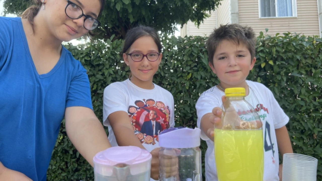 Düzce’de yaşayan 3 ortaokul öğrencisi, sıcak havalarda soğuk içecekler satmaya başladı. Limonata, kivi ve ahududu suyu yapan öğrenciler, durakta satış yapıyor. Vatandaşların yoğun olarak bulunduğu bölgelerde tezgah açan çocuklar, elde ettikleri gelirin yarısını sokak hayvanları için harcıyor.