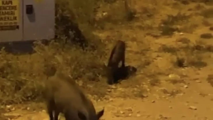 Bursa'da aç kalan domuzlar şehir merkezine indi
