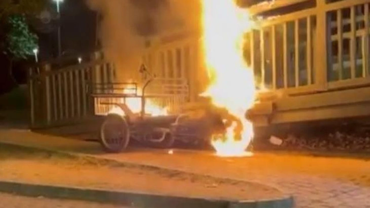 Olay, merkez Osmangazi ilçesi Gaziakdemir Mahallesi’nde meydana geldi. Edinilen bilgiye göre, üst geçit direğine bağlanan elektrikli bisiklet aniden yanmaya başladı. Alevler kısa sürede tüm bisikleti sararken, görenler durumu itfaiye ekiplerine bildirdi. Olay yerine gelen ekipler yangına müdahale ederek söndürürken, bisiklet kullanılamaz hale geldi.