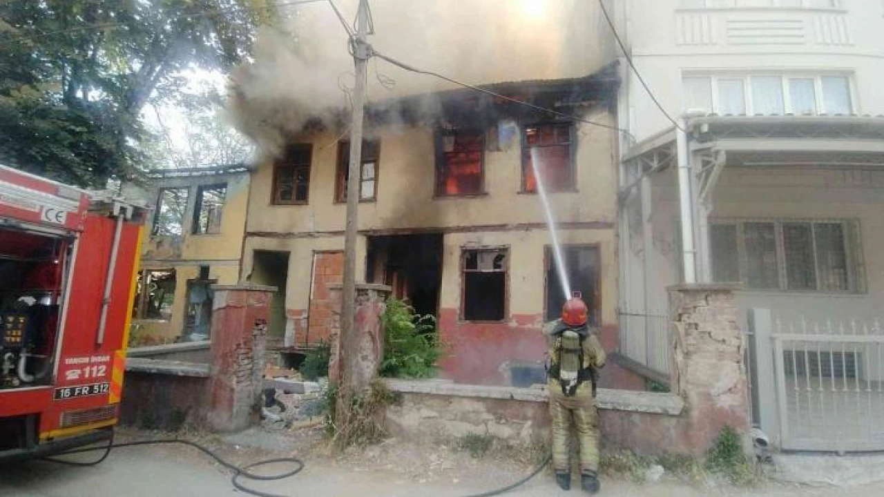 Bursa'da iki katlı ahşap ev alevlere teslim oldu.