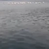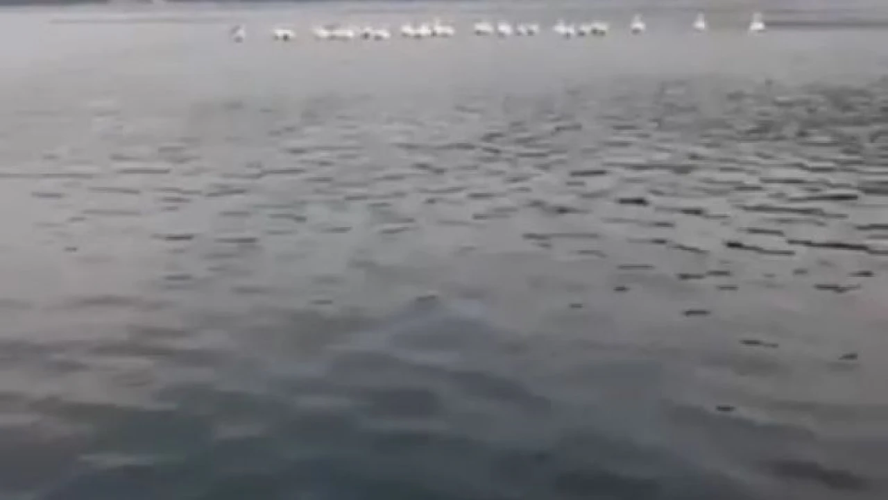 Gemlik'te sabah balığa çıkan Serdar Döner ve Adnan Balı pelikan sürüsüne denk geldi. İki balıkçı o anları cep telefonuyla kayıt altına aldı.