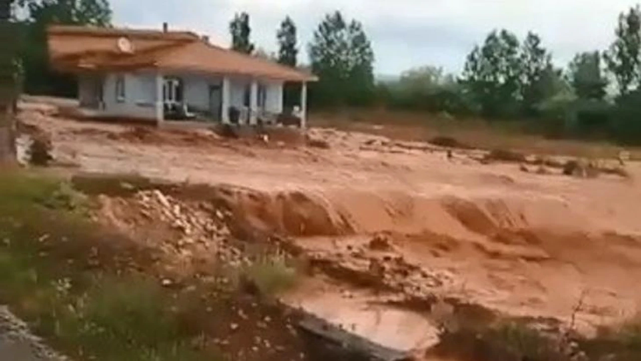 Çankırı’da şiddetli sağanak yağış etkili oldu. Sağanak yağış sebebiyle Çankırı’nın Yapraklı ilçesine bağlı bazı köylerde su baskınları meydana geldi. Ev ve yolların su altında kaldığı köylerde, bazı evleri de su bastı. Yapraklı ilçesine bağlı Buğay köyünde sel anında vatandaşların yaşadığı panik kameraya yansıdı. Görüntülerde bir vatandaşın, “Sel arabayı götürüyor. Bu ne” dediği görülüyor.
