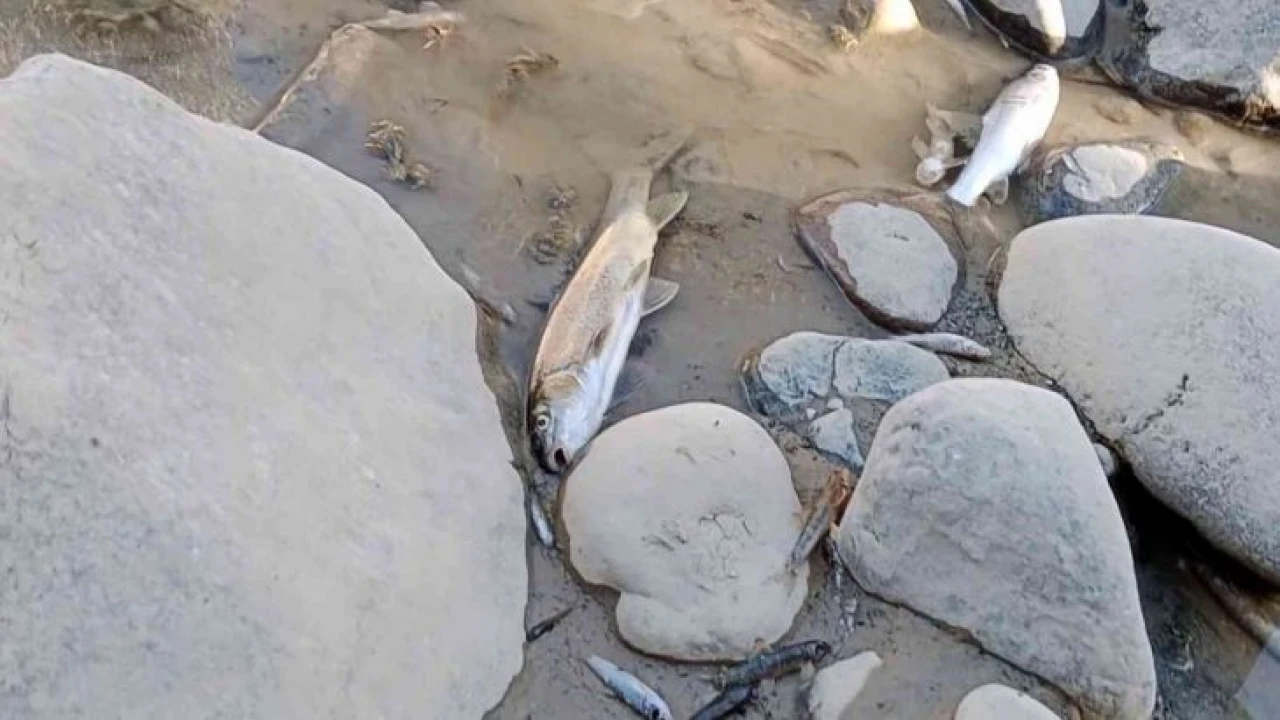 Sivas'ın Divriği ilçesinde kuraklık ve bilinçsiz sulama nedeniyle çay kurudu, kuruyan çayda yüzlerce balık telef oldu.
