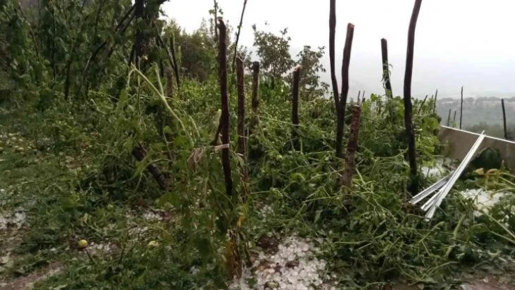 Çorum’un Kargı ilçesinde bir köyde etkili olan dolu yağışında tarım arazileri ve meyve bahçeleri zarar gördü.