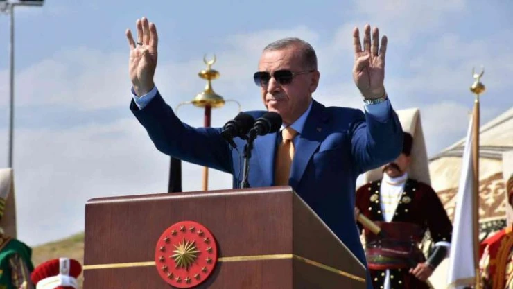 “Bu kesimlerin dünyanın dört bir yanındaki toplumların üstelik bizim gibi binlerce yıllık da değil yaşadıkları coğrafyadaki bir kaç asırlık varlıklarını anlamlandırmak için icat ettikleri tarih ve kültür inşa çabalarını hayranlıkla takip ve takdir ettiklerini biliyoruz. Aynı kesimler konu Türkiye olunca, konu Anadolu olunca, konu Türk milleti olunca, konu İslam olunca tam bir mankurtluk tavrıyla küçümseyici, alaycı, horlayıcı bir tavrın içine giriyorlar. Her ne kadar bunların kanından da olsa, imanından da, vatanımıza olan aidiyetinin de şüphe duysak da kendilerine ne yaptığımızı, niçin yaptığımızı tane tane anlatmayı sürdüreceğiz. Çünkü Cumhurbaşkanı olarak sorumluluğumuz ve mirasçısı olduğumuz medeniyetin kotları bunu gerektiriyor. Evet Ahlat ve Malazgirt geçmişi, bugünü ve yarınıyla Türkiye’dir. Ahlat ve Malazgirt Anadolu’nun ebedi vatanımız olarak tescilidir. Ahlat ve Malazgirt medeniyetimizi yeniden yükseltme irademizin adıdır. Ahlat ve Malazgirt dostlarımıza güven, düşmanlarımıza korku veren o yükselişimizin mührüdür. Ahlat ve Malazgirt yeni nesillere sahip oldukları değerlerin ve vatanın bedelini hatırlatacak bir semboldür. Ecdadın gazadan gazaya koşarak inşa ettiği şanlı tarihi merhum sosyologlarımızdan Erol Güngör şöyle anlatıyor; Savaşa dua ile başlanır, gülbank çekilir, yürüyüşte ve hücumda tekbirler alınır, çarpışma sırasında sancak dibinde ordu hafızları tarafından fetih suresi okunurdu. Bu gelenek Mohaç’ın gazilerini tâ Malazgirt gazilerine, oradan da Bedir’de çarpışan iman ordusuna bağlar. Evet hamdolsun bugünde askerimiz, jandarmamız, polisimiz, korucumuz aynı inançla, aynı cesaretle Bedir’deki iman ordusuna kadar uzanan bir imanla mücadelesini yürütüyor. Dua ile tekbir ile Fetih Suresi ile çıkılan kutlu bir mücadeleden zaferin de muhakkak olduğuna yürekten inanıyor muyuz? Elbette herkes inanmak zorunda değil, iman da bir nasip meselesidir. Kimsenin inancı ve imanıyla canları pahasına mücadele eden, alın terini ve kanını bu uğurda akıtmadan tereddüt göstermeyen kahramanlarımıza saygısızlık etme hakkı da yoktur. Kimse duadan, tekbirden, salavattan rahatsız olmasın. Çünkü bu dualar, tekbirler, bu salavatları; kökeni, inancı, meşrebi ne olursa olsun Türkiye Cumhuriyeti sınırları içinde yaşayan herkesin istiklali ve istikbali için verile cansiperane mücadelenin manevi zırhıdır.”
