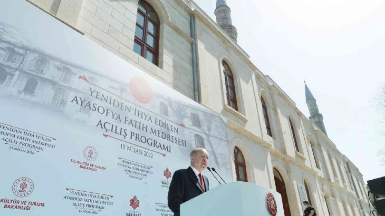 Cumhurbaşkanı Recep Tayyip Erdoğan, Yeniden İhya Edilen Ayasofya Fatih Medresesi Açılışı’nda yaptığı konuşmada, "Bu açılışla sadece emanete sahip çıkmıyoruz, tek parti zihniyetinin bir utanç lekesini daha ortadan kaldırıyoruz" dedi.