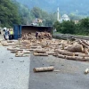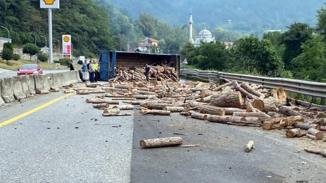 Sakarya'nın Geyve ilçesi D-650 karayolunda sürücüsünün kontrolünden çıkan tomruk yüklü tır devrildi. Yola savrulan tomruklar sebebi ile trafik durma noktasına geldi.