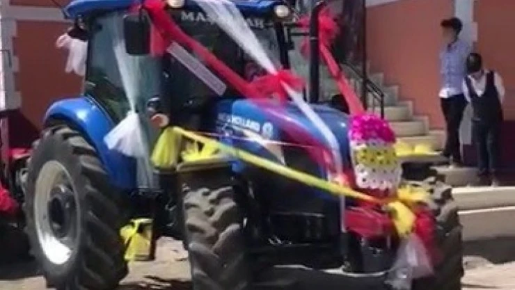 Sivas’ın Ulaş İlçesine bağlı Baharözü köyünde traktörlerden oluşan düğün konvoyu ilginç görüntüler oluşturdu. Damat Gökhan Kavak, tarım ve hayvancılıkta kullanmak için yeni aldığı traktörü süsleyip gelin arabasına dönüştürdü. Birçok kişinin olmaz dediği düğün konvoyunu hayalinde ki gibi traktörlerden oluşturan Kavak, konvoy halinde gelinin baba evine gitti. Baba evinden dualarla çıkan genç çift traktöre binerek köyde tur attı. Gelin arabasına dönüştürülmüş traktörü karşısında gören vatandaşlar o anları cep telefonlarıyla görüntüledi.