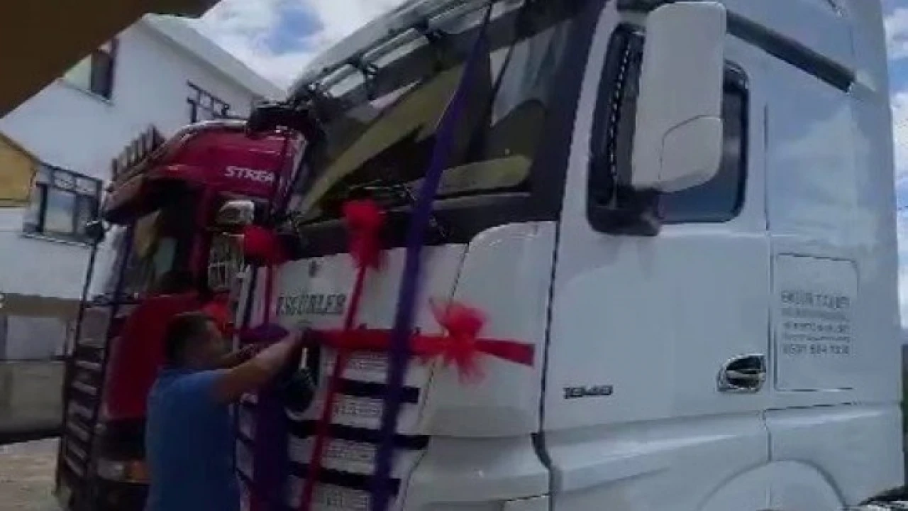 Sivas’ta tır şöförü olan Ozan Kaluc, hayalini gerçekleştirmek için kendisinin ve arkadaşlarının tırlarını süsleyerek gelin almaya tır konvoyuyla gitti.