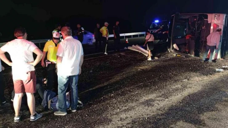 Denizli'de yolcu otobüsü refüje devrildi: 2'si ağır 28 yaralı