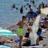 Sahilde zaman zaman deniz üzerinden sert esen rüzgar ise tatilcilere zor anlar yaşattı. Rüzgarın hızı ile bazı şemsiyeler yerinden çıkarak metrelerce uzağa uçtu. Vatandaşlar da yakalamak için şemsiyelerin peşinden koştu. Vatandaşların şemsiyeler ile imtihanı kameralar tarafından kaydedildi.