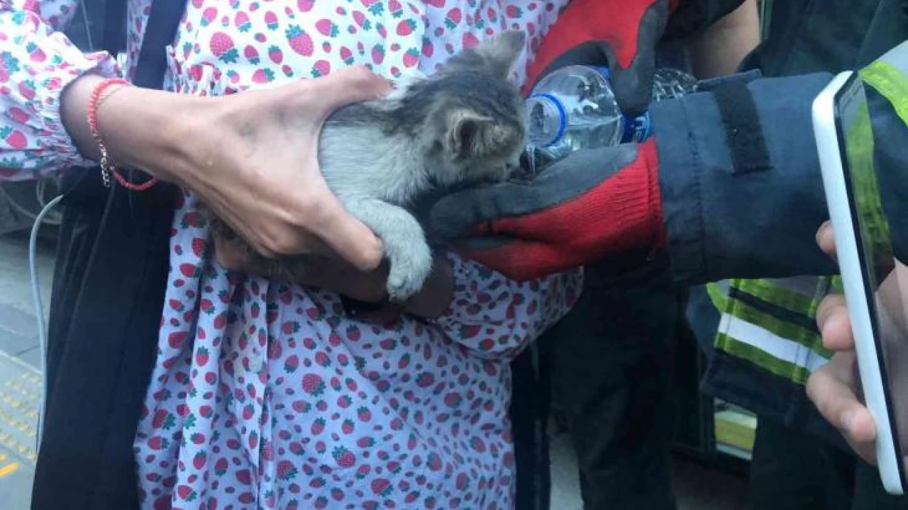 Konya'da durakta bekleyen bir tramvayın motor bölümüne kedi girdi. Kediyi fark eden çevredeki vatandaşların ihbarı üzerine olay yerine sevk edilen itfaiye ekiplerince kurtarılan yavru kedi, duraktaki bir genç kız tarafından sahiplenildi.