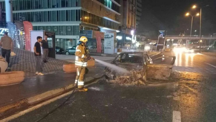 Öte yandan itfaiye ekipleri yanan otomobilde uzun süre soğutma çalışması yaptı.