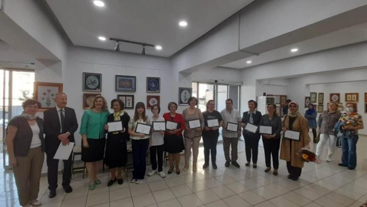 Nilüfer Belediyesi’nin düzenlediği sanat atölyelerine katılan kursiyerler bütün eğitim dönemi boyunca yaptıkları çalışmaları yıl sonunda sergiliyor. Bu sergilerden birini de Ebru Atölyesi’ne katılan kursiyerler gerçekleştirdi. 2021-2022 döneminde düzenlenen Ebru Atölyesi’ne katılan 12 kursiyer, dönem boyunca yaptıkları çalışmanın ürününü sergide meraklıları ile buluşturdu. Konak Kültürevi’nde düzenlenen serginin açılışına kursiyerler, yakınları, sanatseverler ile Nilüfer Belediyesi Kültür ve Sosyal İşler Müdürü Nejla Aslan, katıldı. Serginin açılışından sonra Nilüfer Belediyesi Kültür ve Sosyal İşler Müdürü Nejla Aslan, kursiyerlere sertifikalarını verdi. 80 eserin yer aldığı sergi, 18 Mayıs’a kadar izlenime açık kalacak.